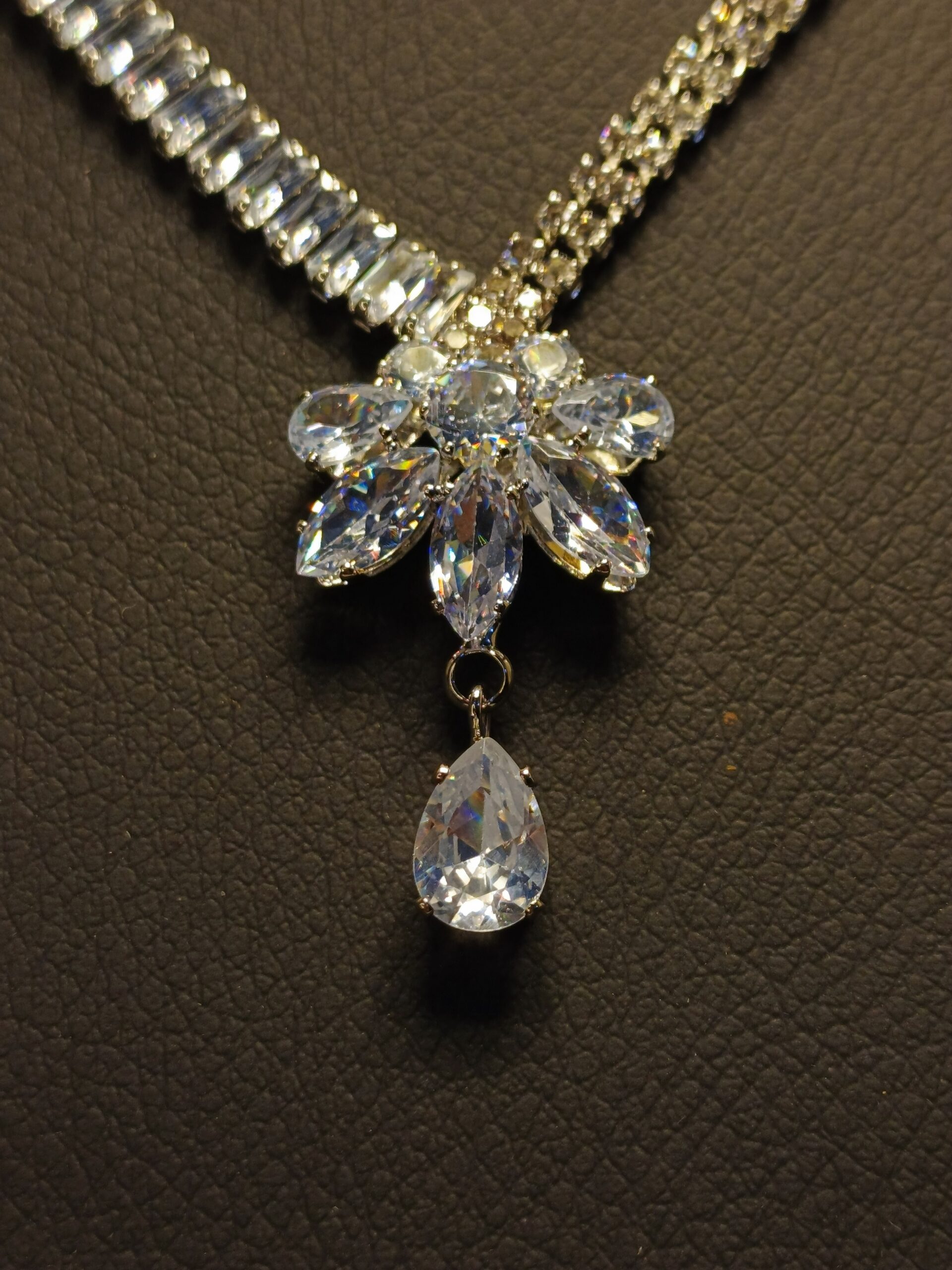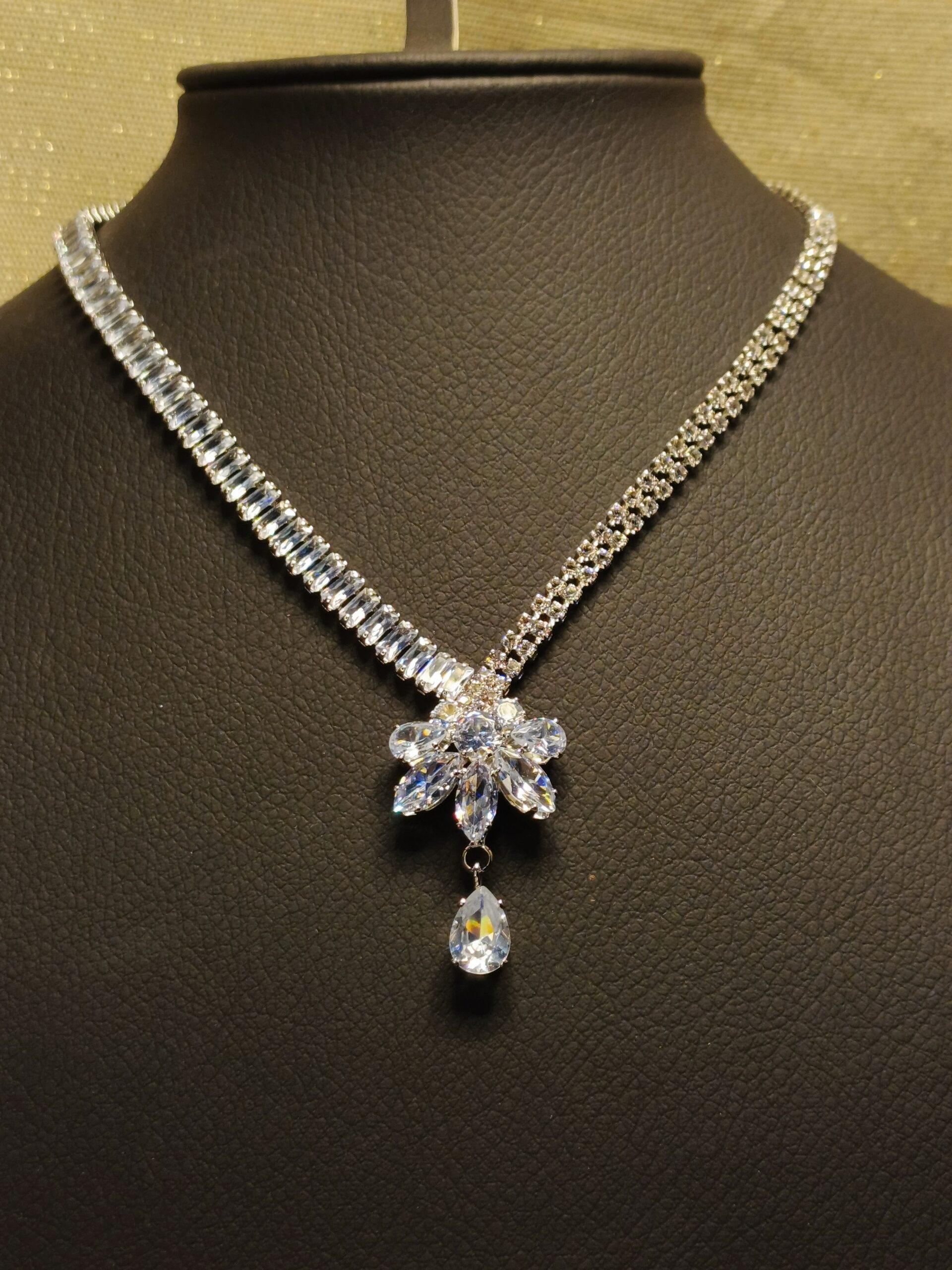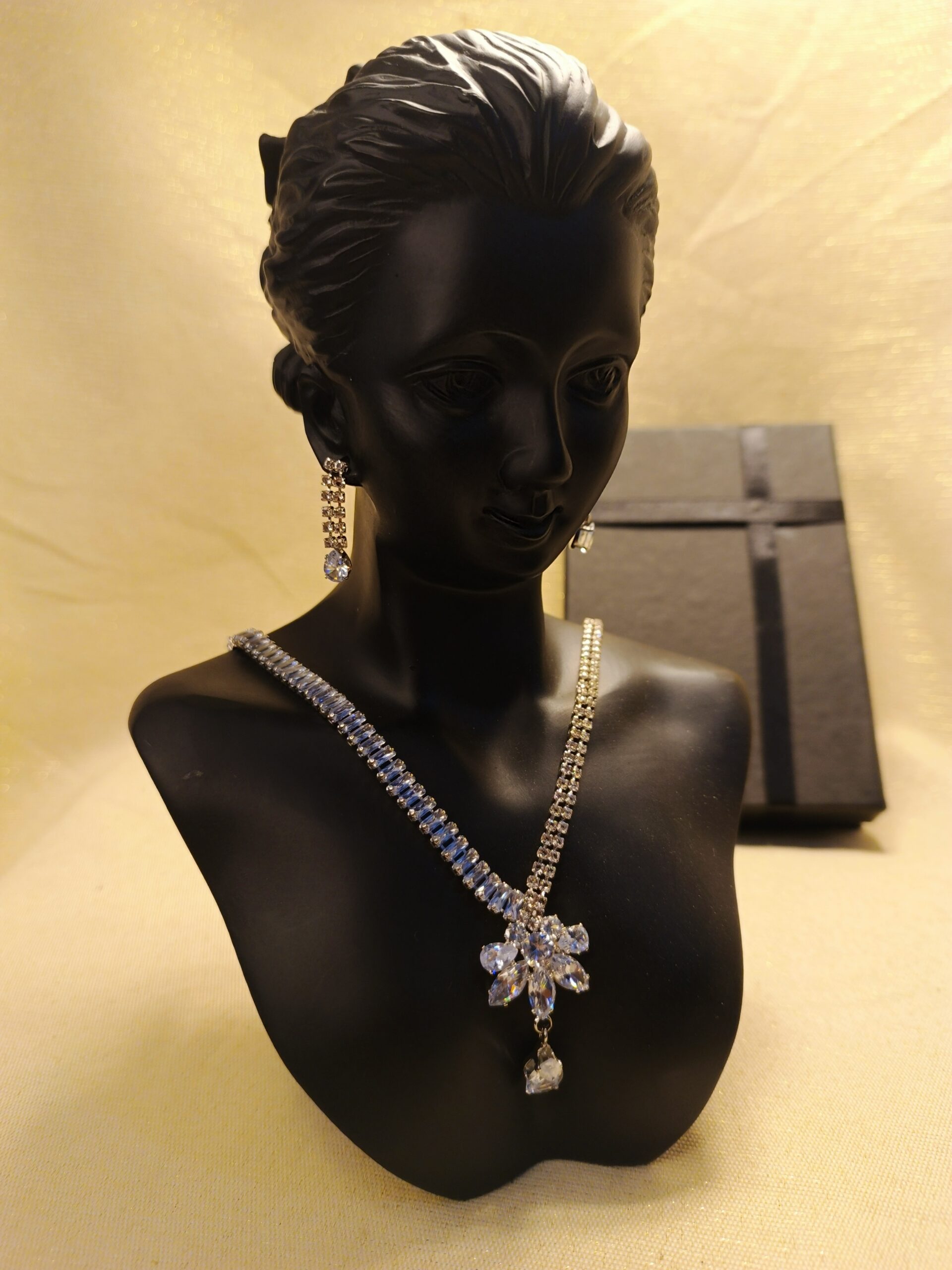 Complementing the necklace, the matching earrings are designed to enhance your beauty, offering a glamorous yet refined look. Whether for a wedding, formal event, or a special evening, this set is crafted to make you shine with confidence.