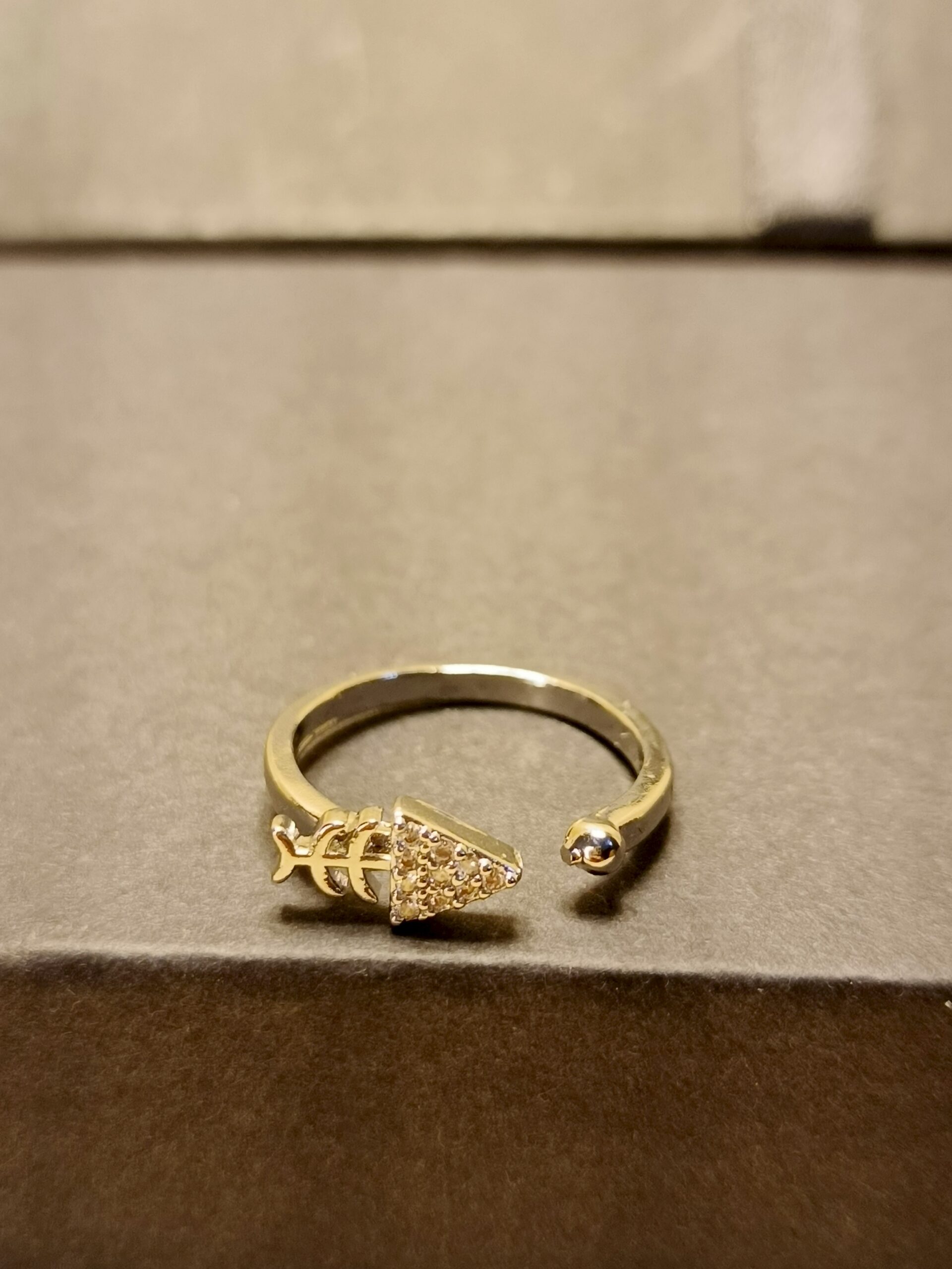 A stylish silver open ring featuring a sleek fishbone design, perfect for those who love unique, ocean-inspired jewelry.