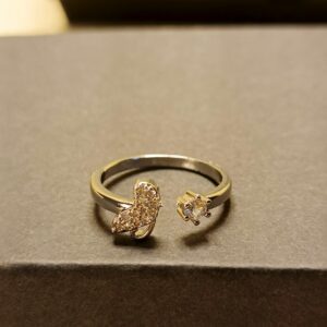 Gold-Plated Butterfly Ring with Black Stones